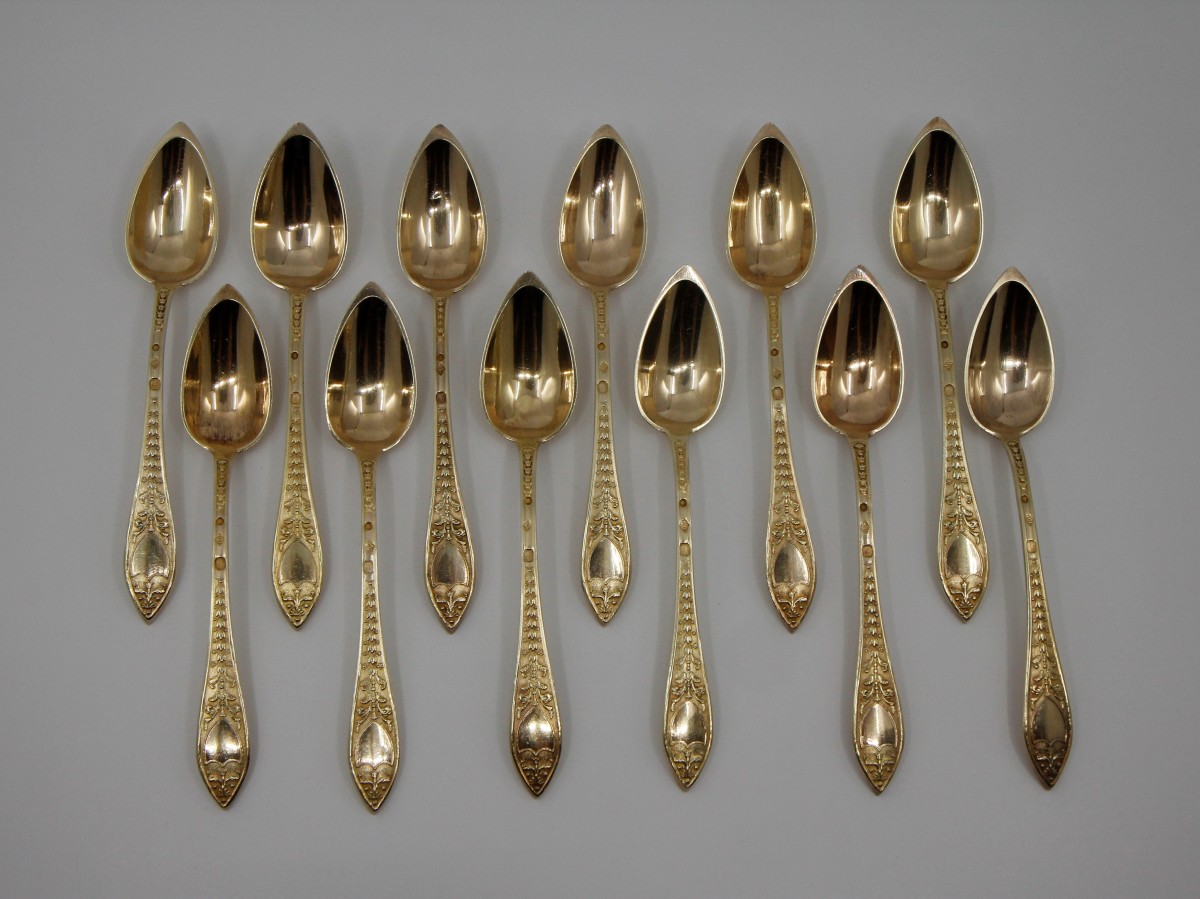 Très beau modèle Restauration aux cuillerons pointus et au décor de chutes de fleurons & d'agrafes feuillagées; un écusson [vierge] en réserve sur la spatule.