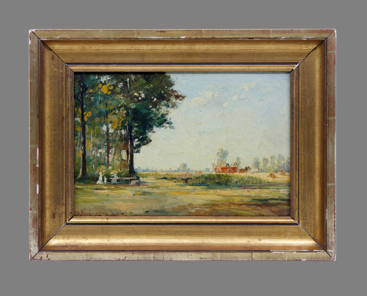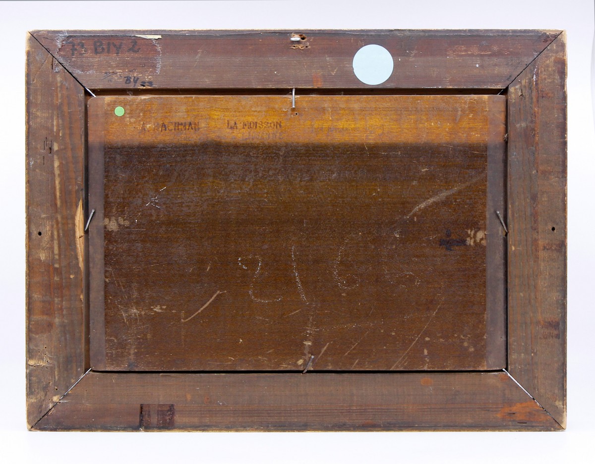 Installé en France dans la région parisienne, à Corbeil puis à Clamart, il a exposé au Salon des Indépendants de 1908 à 1913. Au dos de notre tableau est mentionné au crayon "Indépendants 1909", mais il ne semble pas que ce sujet, La Moisson, y ait été exposé cette année - ni les suivantes.