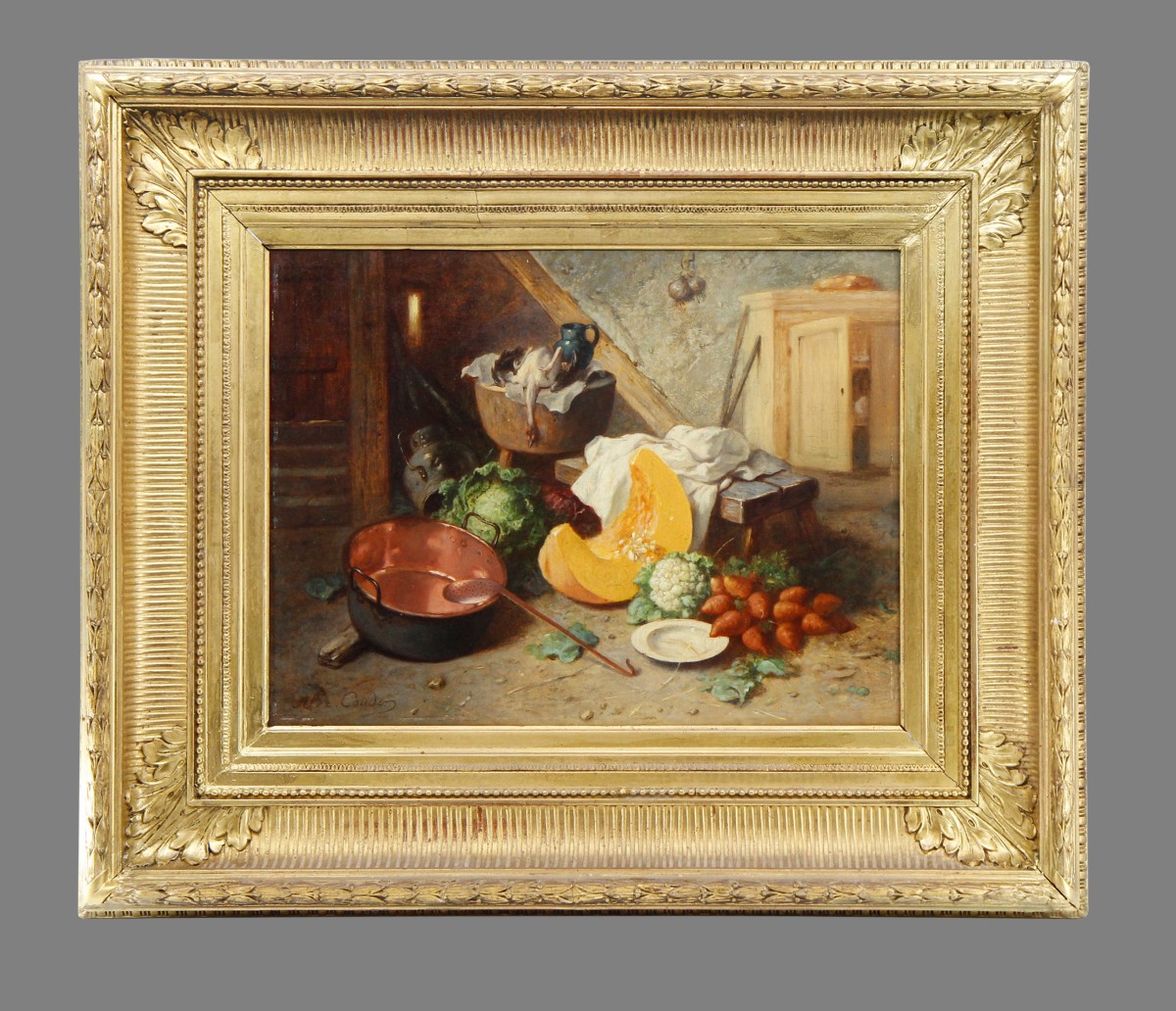 "COUDER (Jean-Alexandre-Rémy), peintre d'histoire, de genre, de natures mortes, né à Paris le 16 avril 1808, mort en 1879, Larousse donne 1810-1875 (Ec. Fr.).