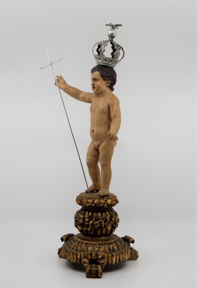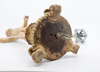 Hauteur totale: 44 cm (socle: 12,5 cm / Christ: 23,5 cm / couronne: 8 cm)