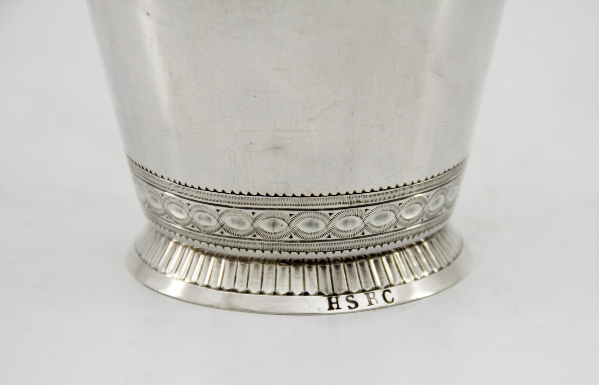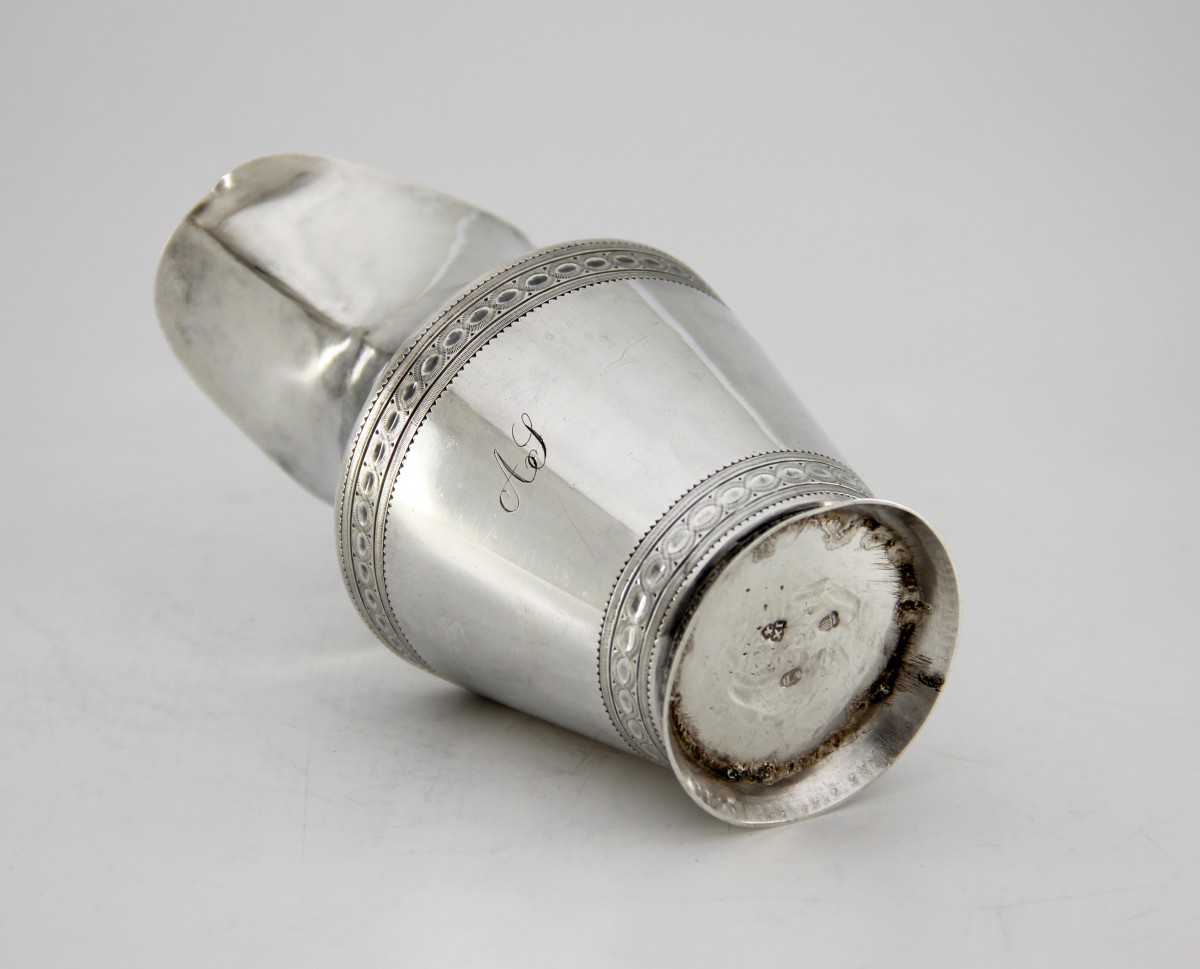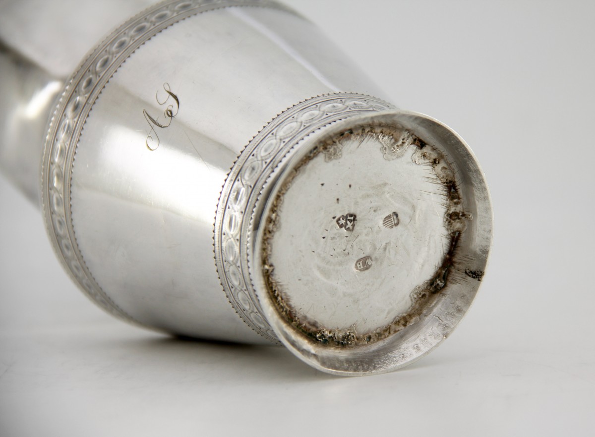 Un bol sur talon de la même période avec les mêmes initiales, par l'orfèvre Jean-Frédéric Amaron, est également disponible dans notre galerie [voir dernière photo].