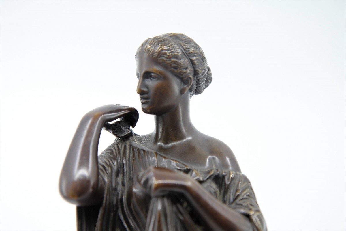 L'original en marbre de cette statue de femme drapée - vraisemblablement Artémis - a été découverte en 1792 sur la propriété du prince Borghèse à Gabies, près de Rome. Vendue à Napoléon Ier en 1807, la statue est exposée au Louvre dès 1820.