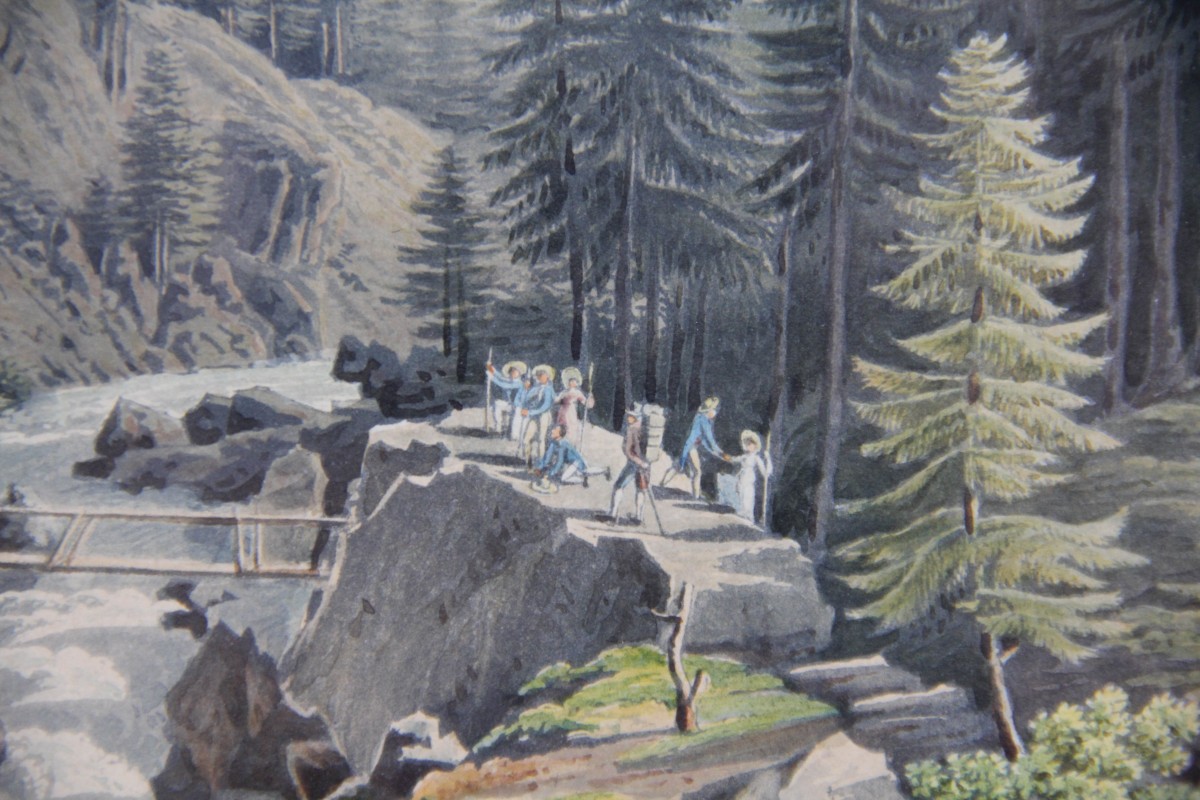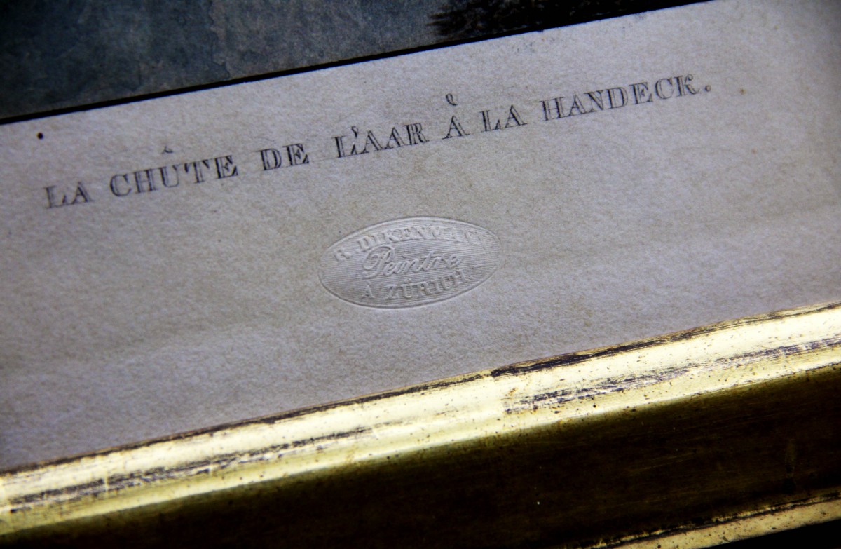 Cette gravure porte le timbre à sec du peintre zurichois Rudolf Dikenmann (1793-1883), également auteur d'une vue des chutes de l'Aar.