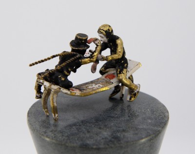 Très expressifs, ces deux jeunes ramoneurs jouent une partie de cartes endiablée. Celui avec le chapeau s'apprête à abattre son as de coeur au nez de son collègue désappointé...