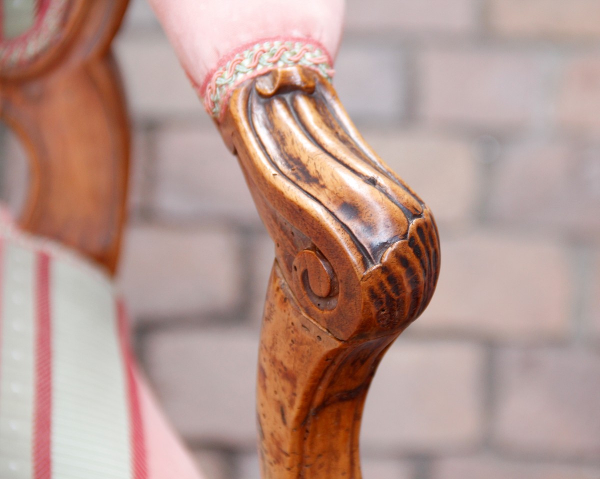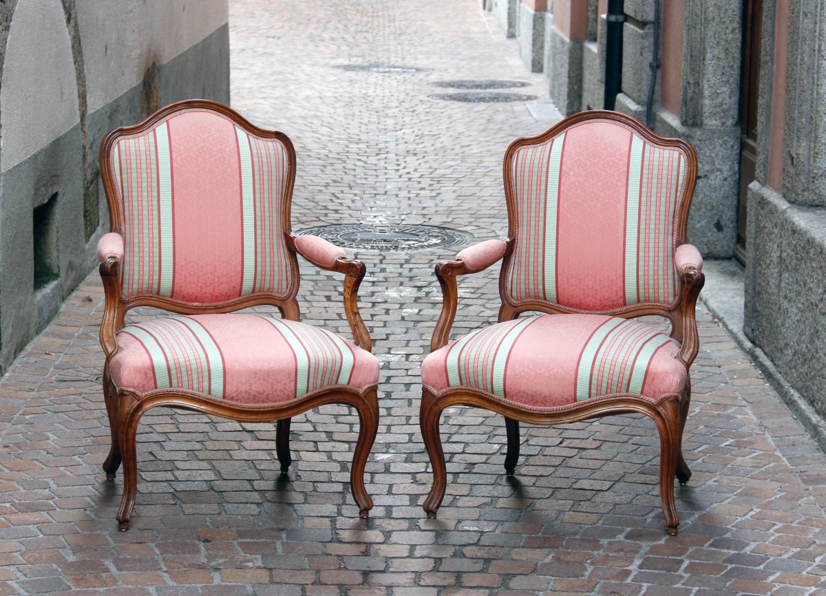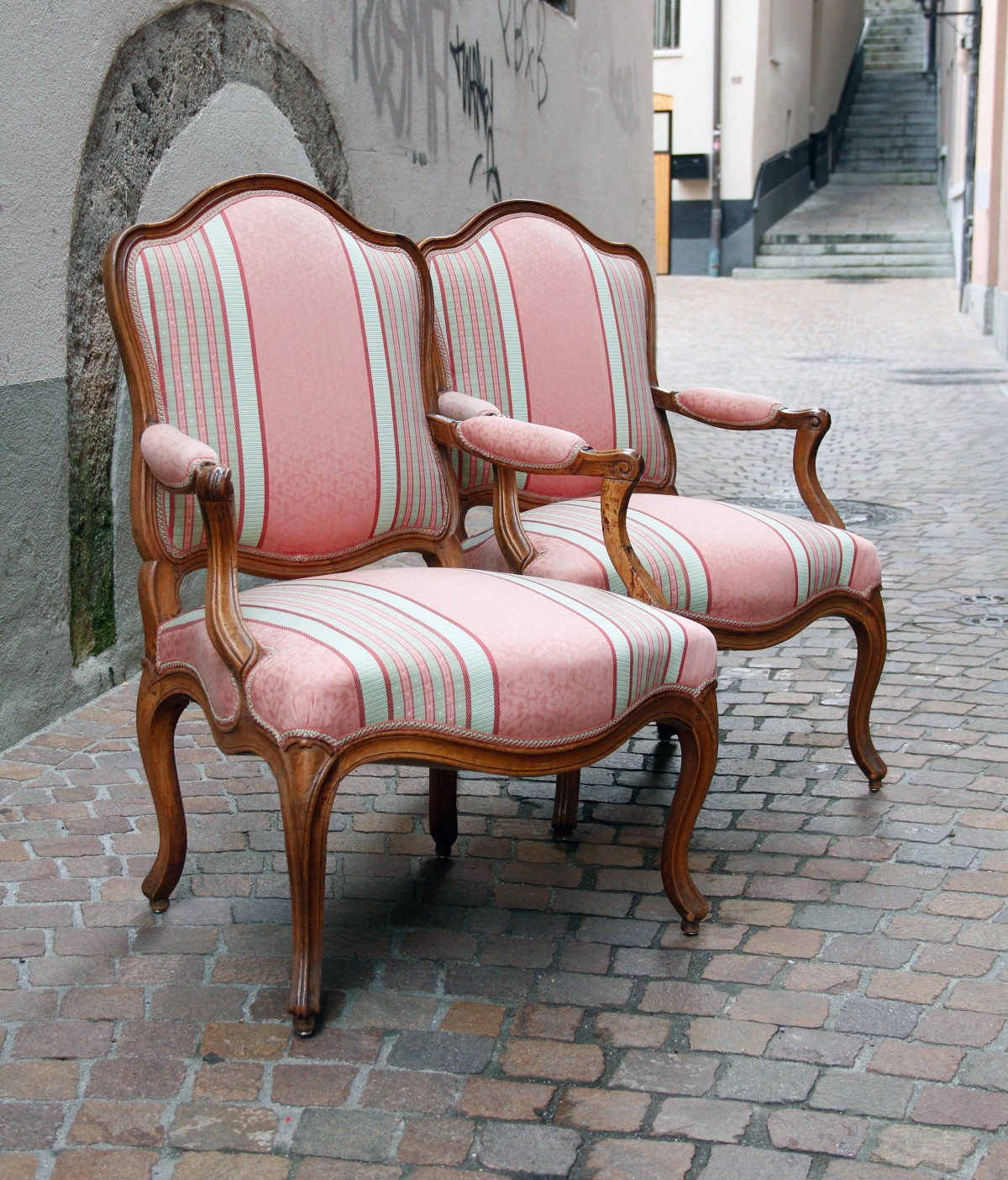Présentés dans leur état de découverte, garnis à ressorts et recouverts au XXe d'une soie imprimée.