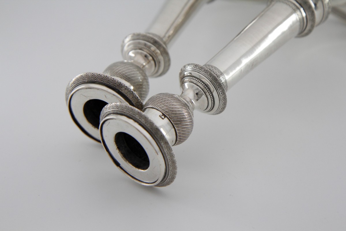 - Poinçon d'orfèvre G. Schisani, sur le pied. Ce poinçon peut renvoyer à un des membres de la famille Schisani, active à Naples de 1808 à 1857. Sont notamment cités dans les archives Gaetano, Giuseppe, Gennaro et Giovanni, sans qu'il soit pour l'instant possible d'attribuer ce poinçon à l'un ou à l'autre (Donaver & Dabbene 1989, vol. II p. 339; Catello 1972 p. 121).