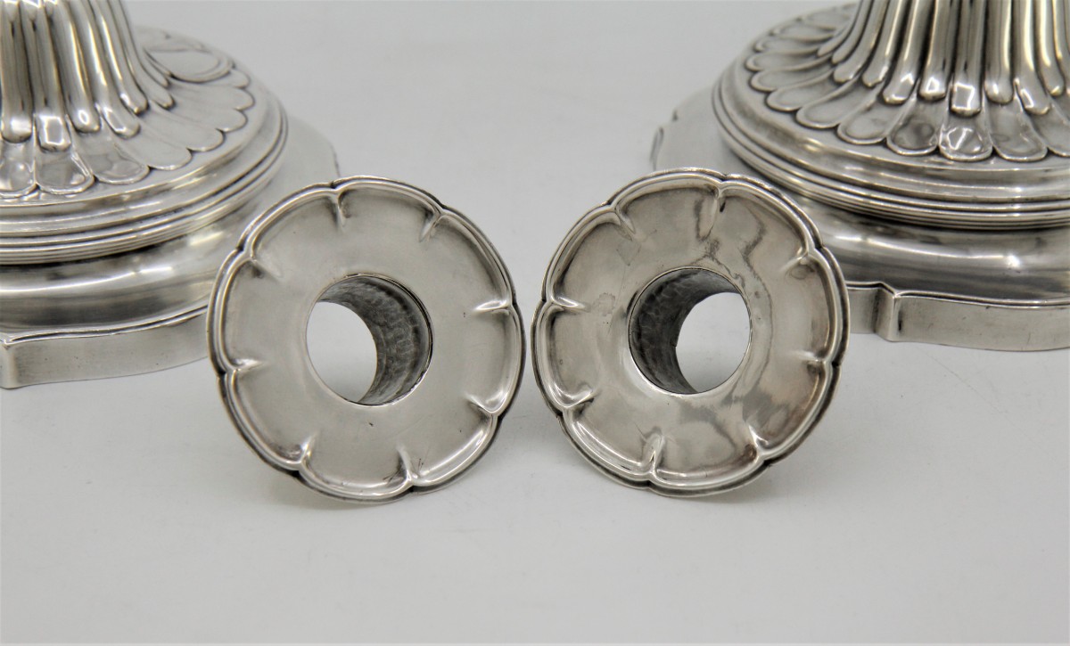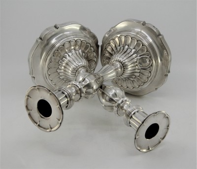 Le binet, à côtes au modèle et à la base renflée moulurée de filets, reçoit une bobèche - d'origine - délicatement polylobée.