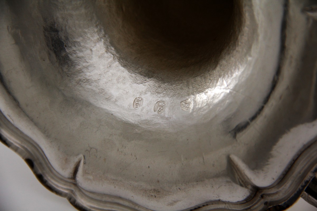 Si les premiers modèles présentent des pieds octogonaux, le pied rond - délicatement contourné et mouluré de filets, comme sur nos exemplaires - va vite s'imposer comme le pied "classique", sans doute sous l'impulsion de l'orfèvre lausannois Philibert Potin [Hörack 2007, p.113 sqq.].