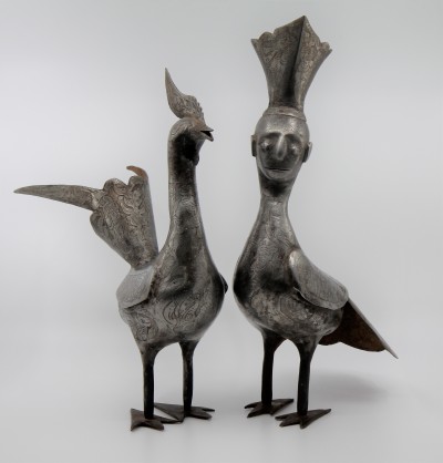 Les animaux en acier, très souvent réalisés par paire, sont typiques de l'art religieux de la dynastie Qajar. Ils servaient à décorer les 'alams lors des cérémonies - notamment celle commémorant le martyre de Hussein à Kerbala, au mois de Muharram.