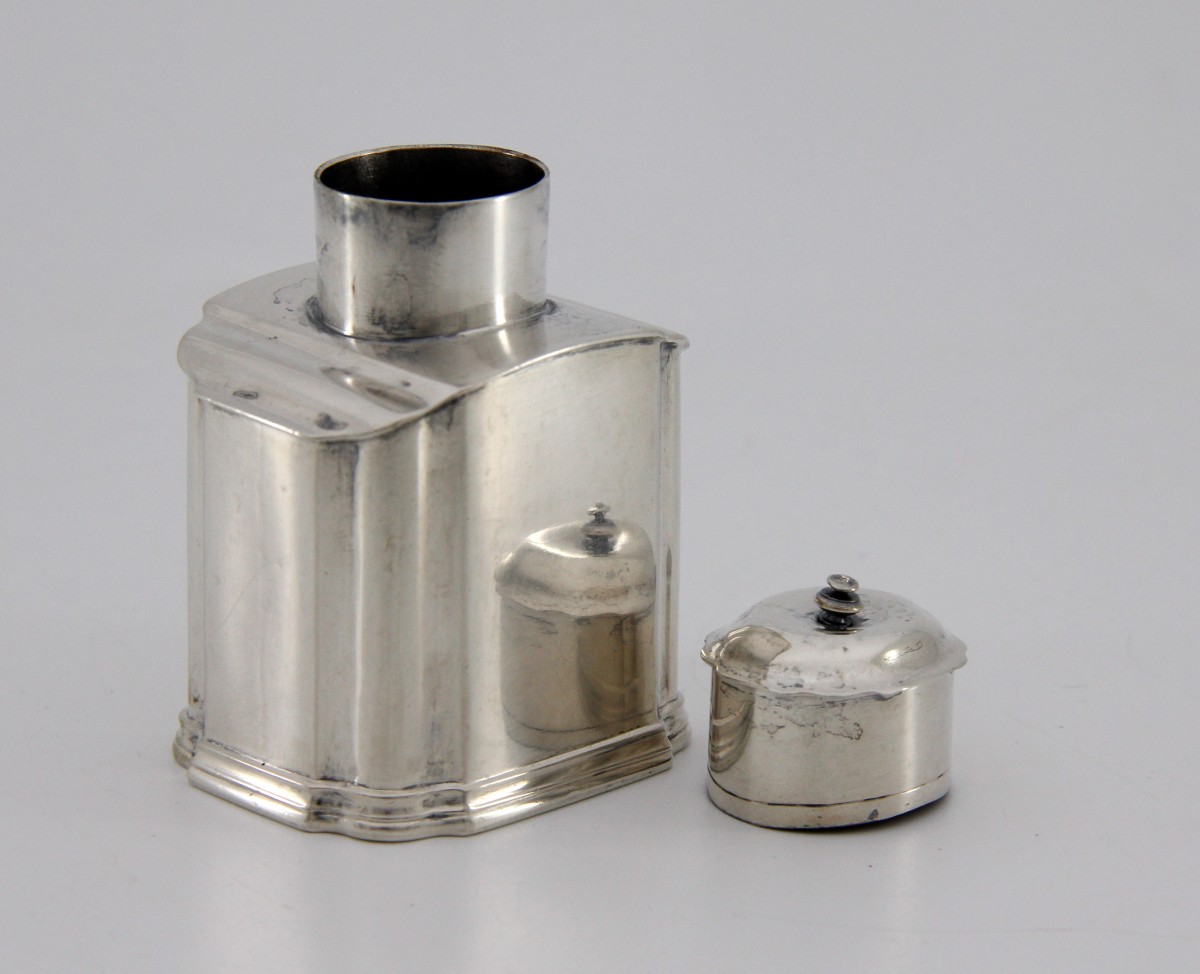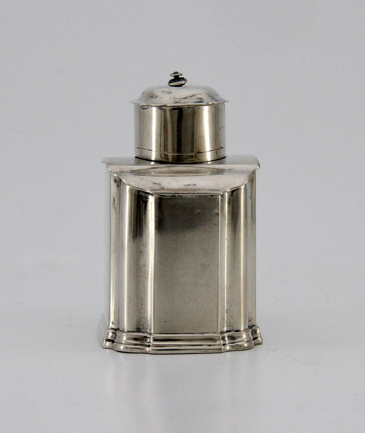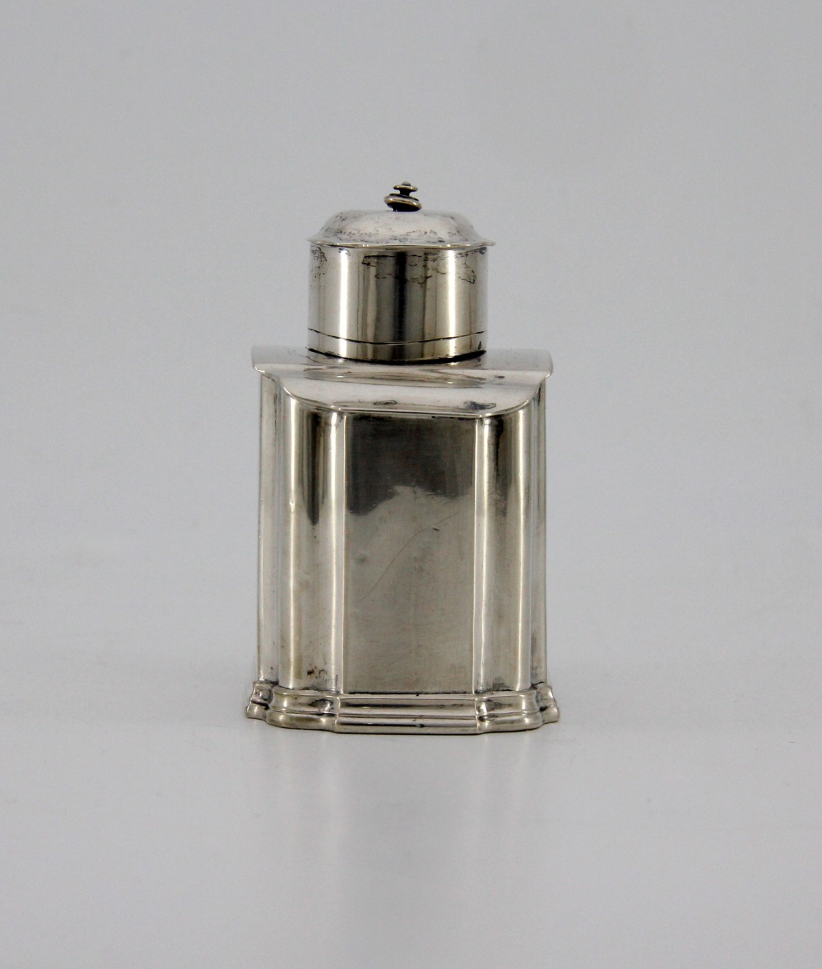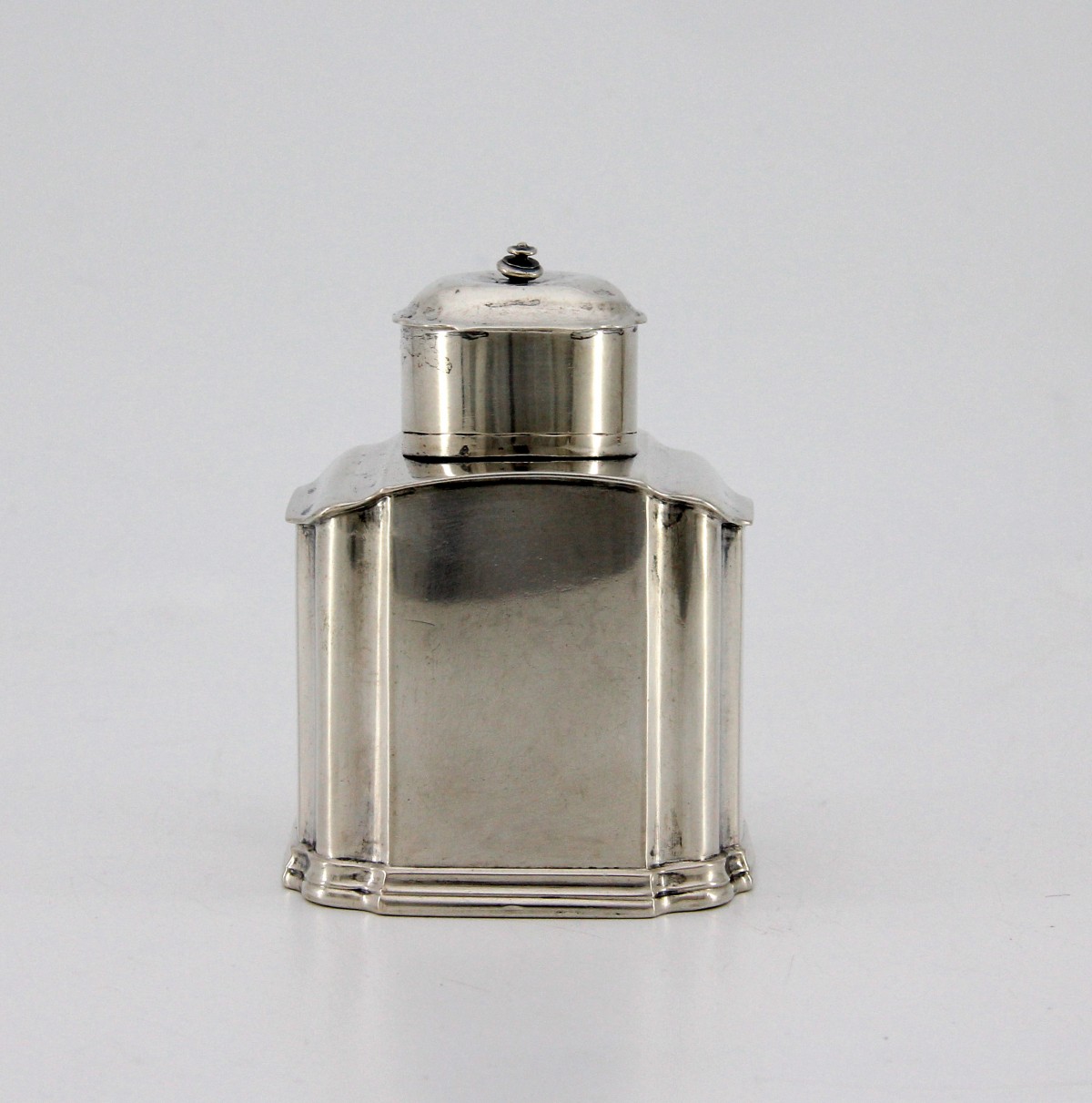 Cette petite boîte à thé, qui faisait sans doute partie d’un nécessaire de voyage, reprend en orfèvrerie les formes contemporaines créées en porcelaine, notamment à Meissen.