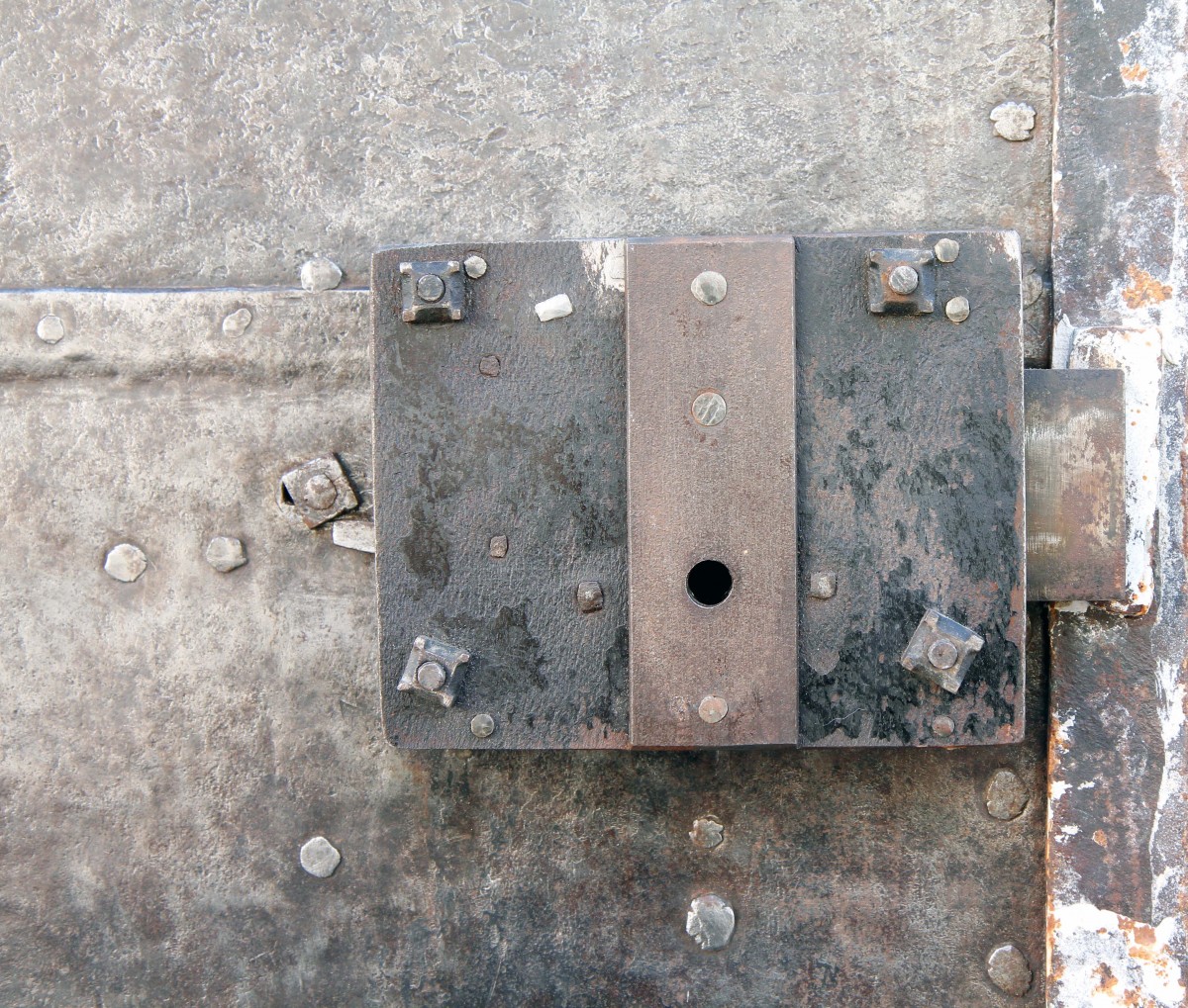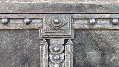 La serrure et la clé ont été changées au cours de la première moitié du XIXe, comme en témoignent les quatre rivets plus sombres visibles en façade.
