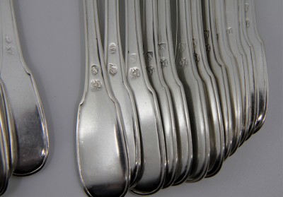 Un ensemble fort rare de couverts en argent du milieu du XVIIIe siècle.