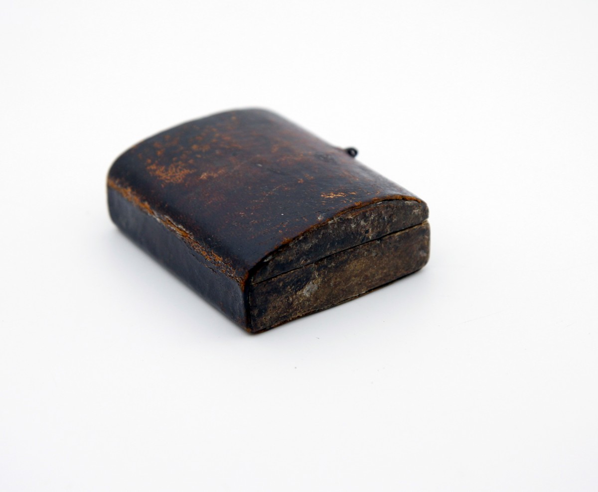 L'écrin à la forme, en bois recouvert de cuir, est gainé de peau chamoisée.
