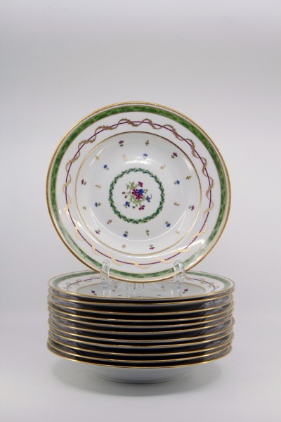 - 12 assiettes à soupe Ø 24 [en parfait état, elles n'ont vraisemblablement jamais été utilisées]