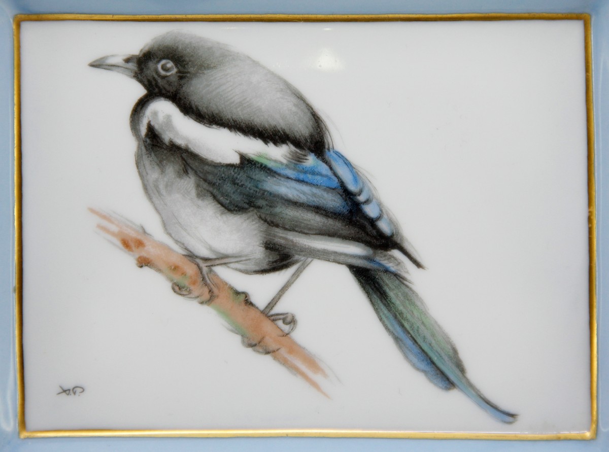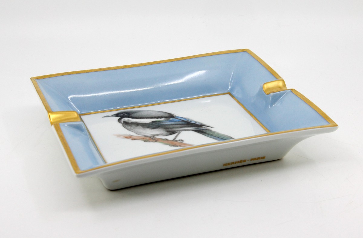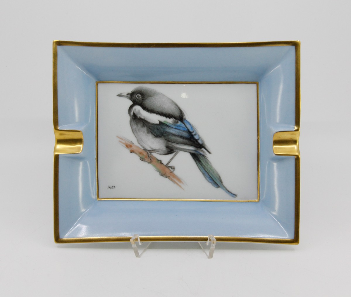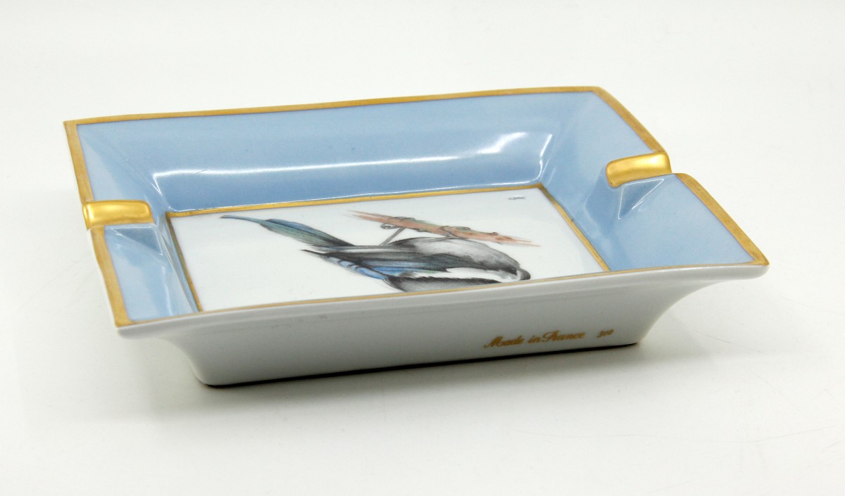 Cendrier en porcelaine de Limoges bleu pâle et or